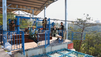 这里有广西最长溜索两条共600米,